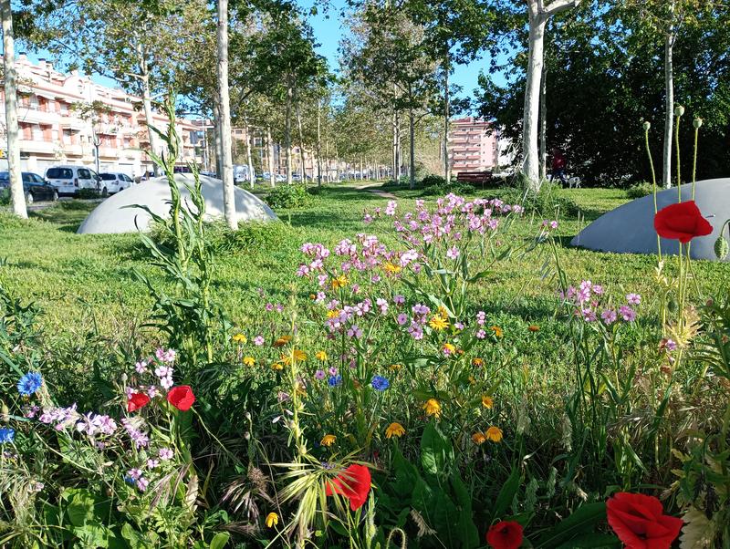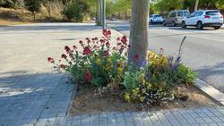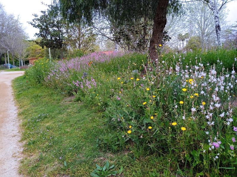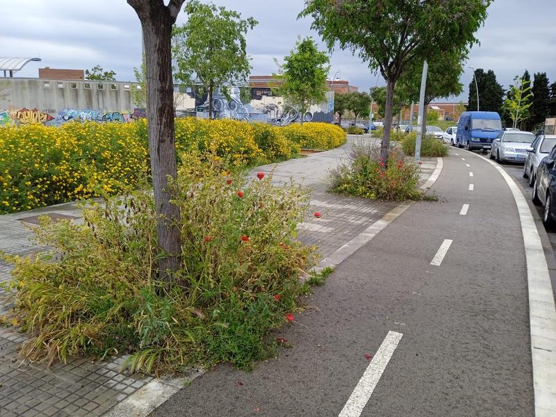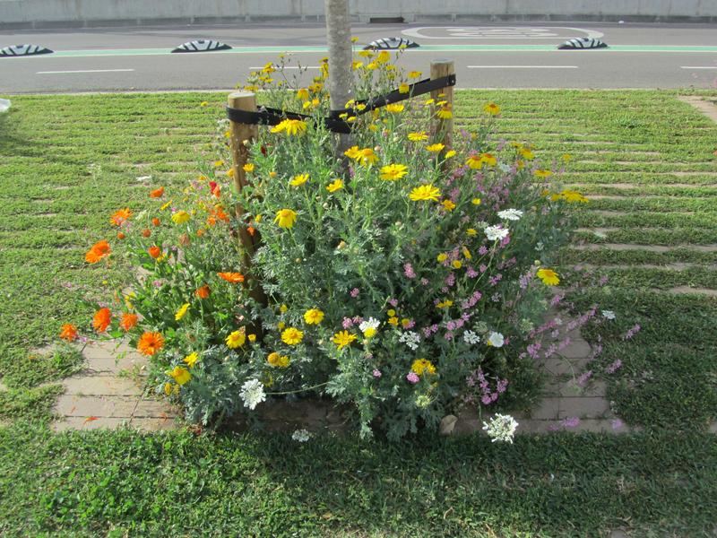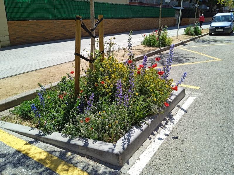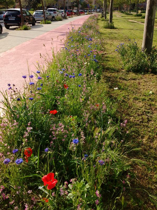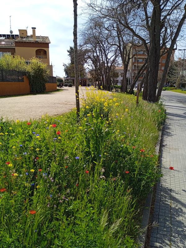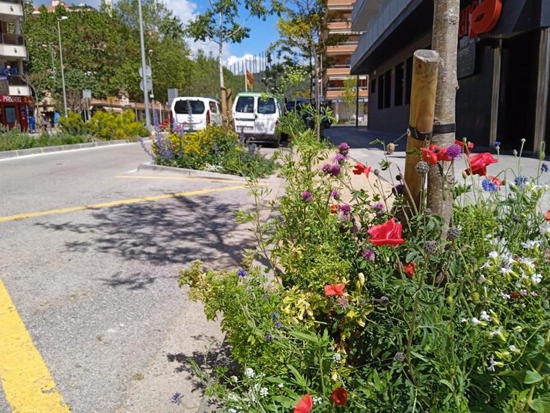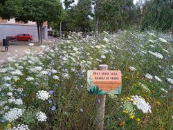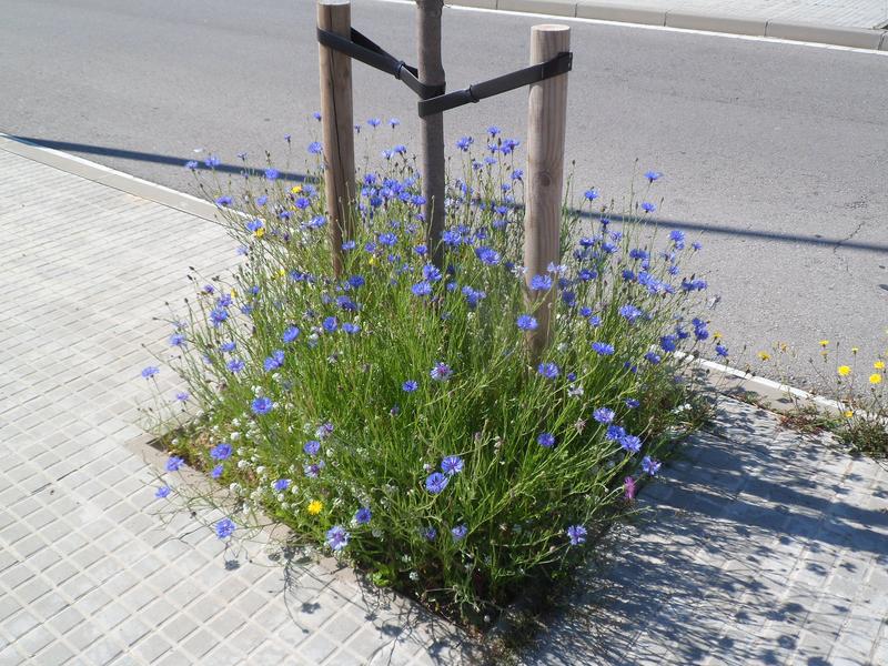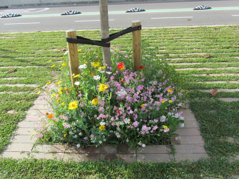 Peus d'arbres i franja sembrades amb plantes silvestres i vivaces