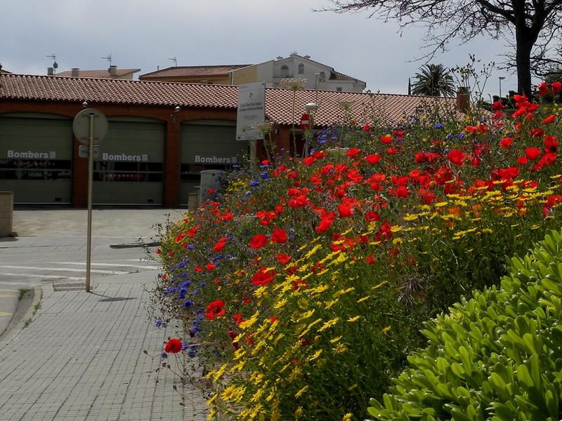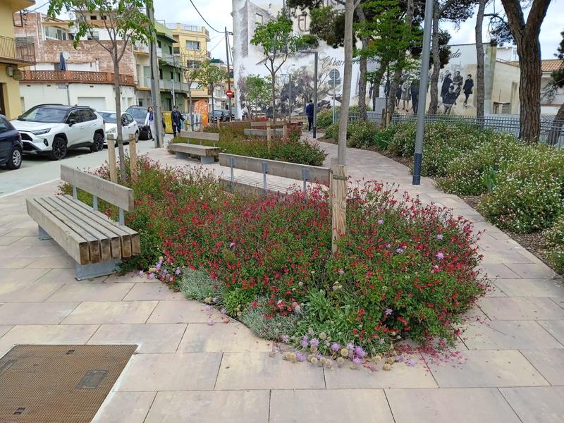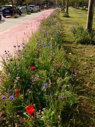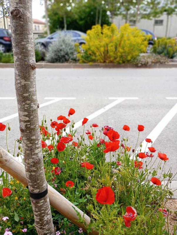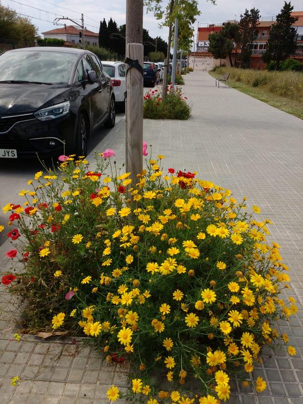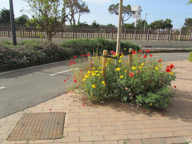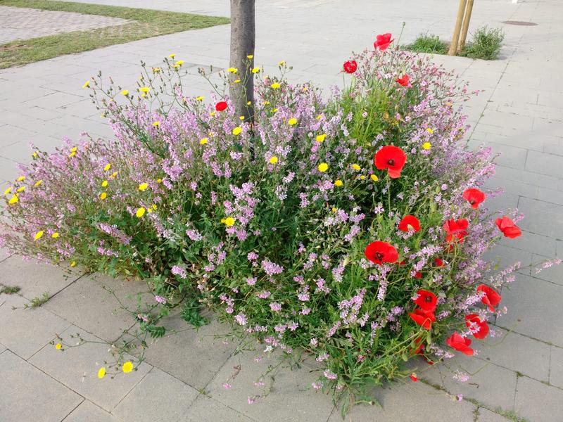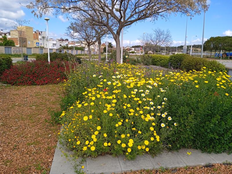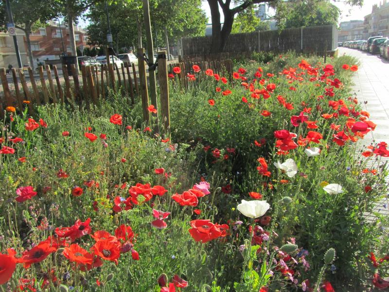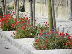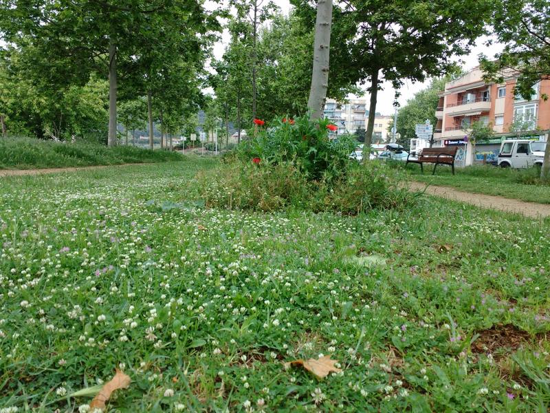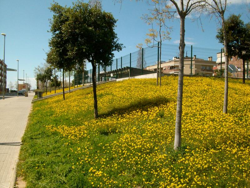 Peus d'arbres i franja sembrades amb plantes silvestres i vivaces