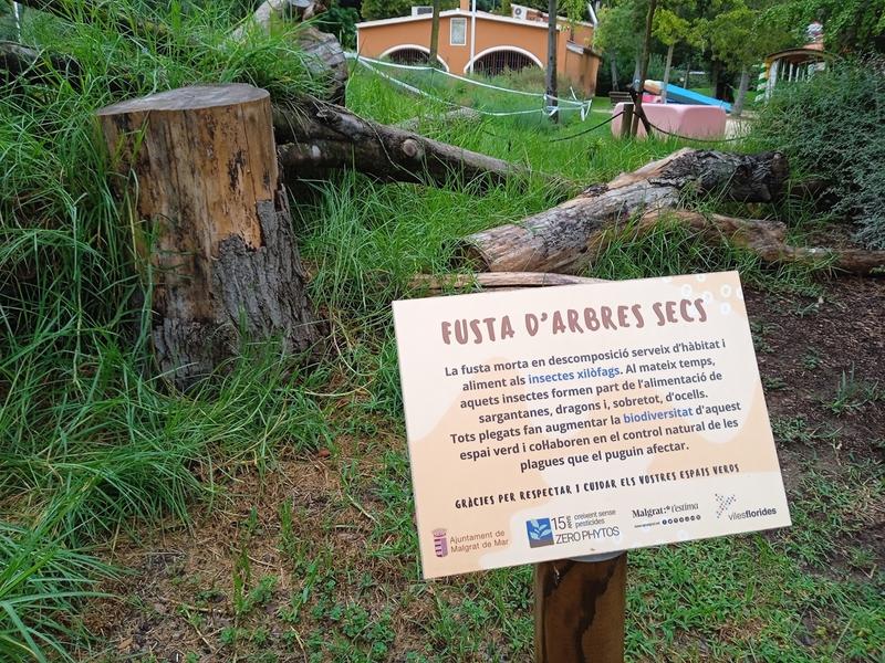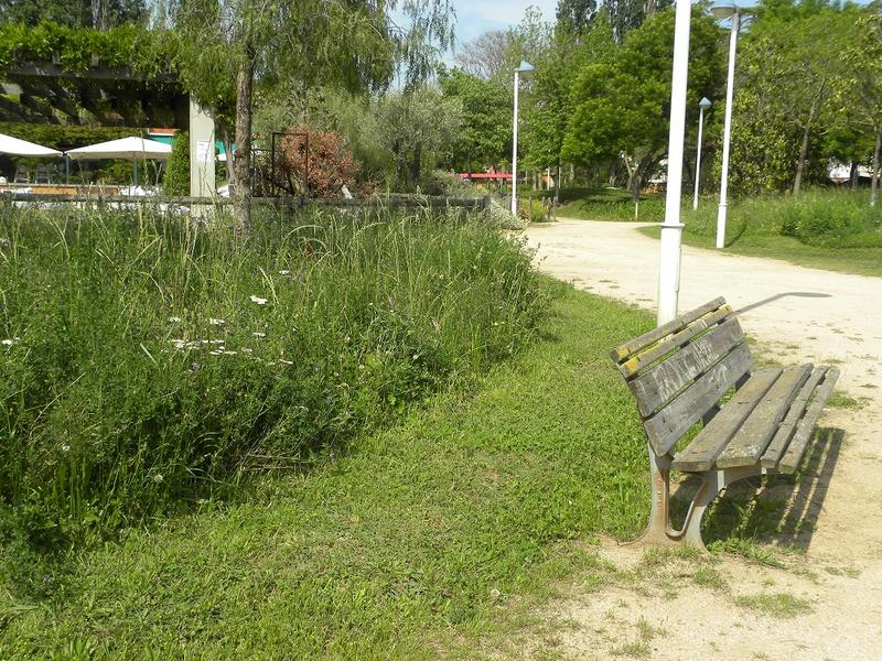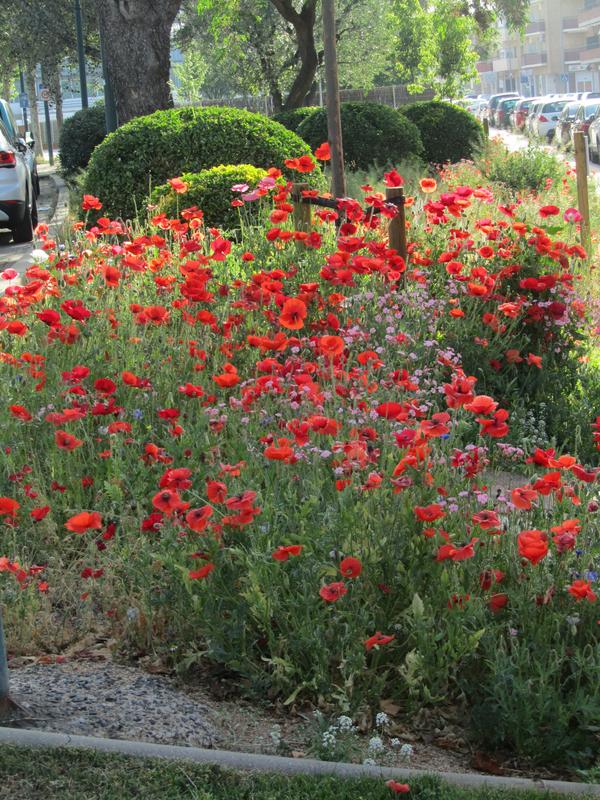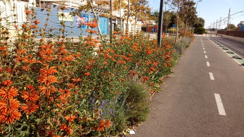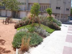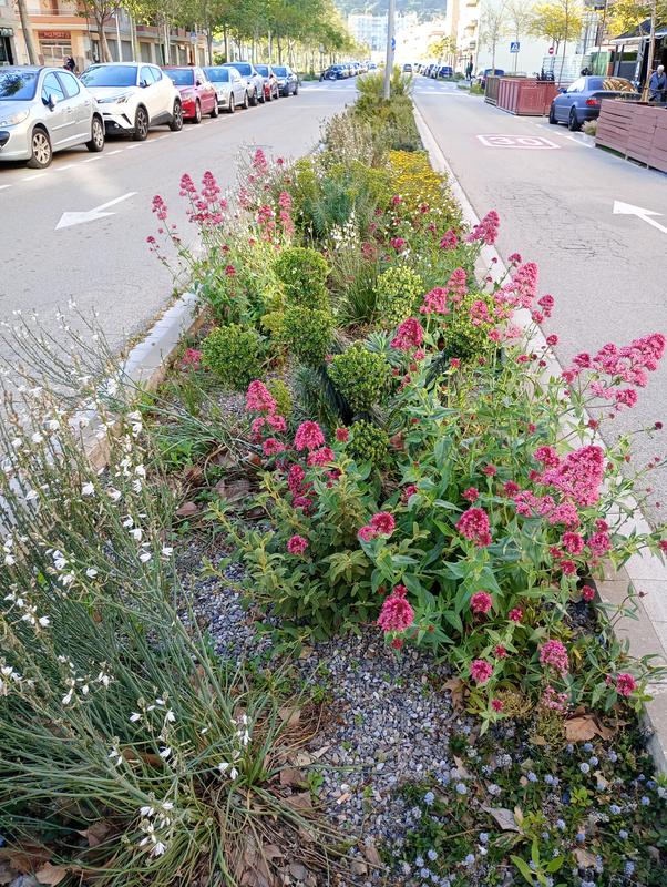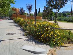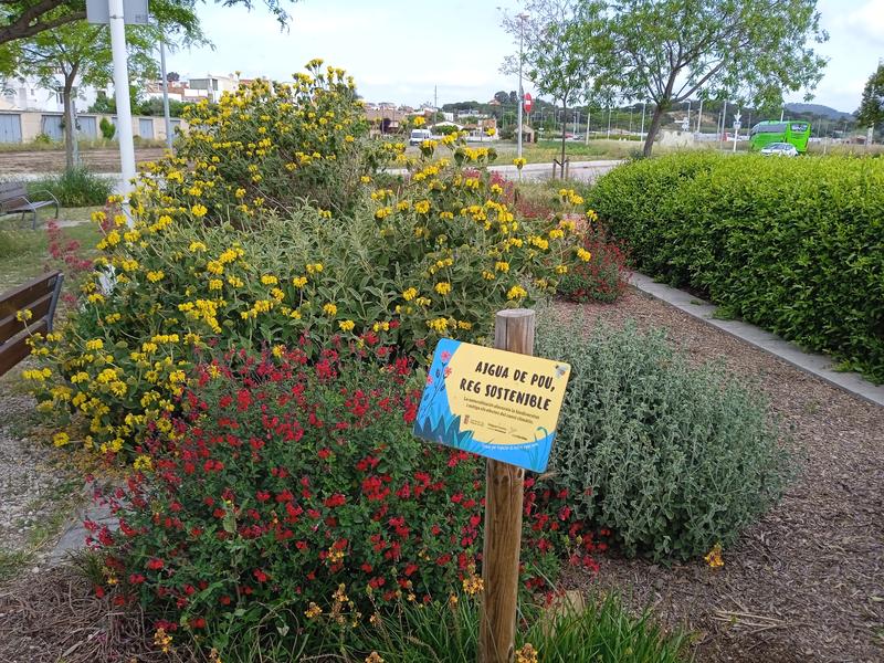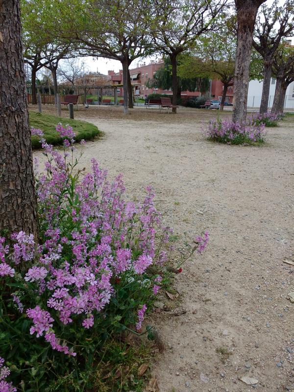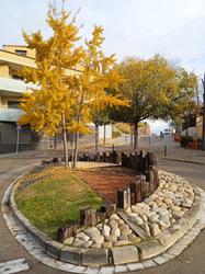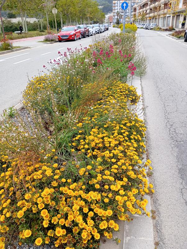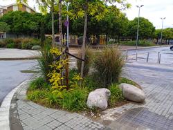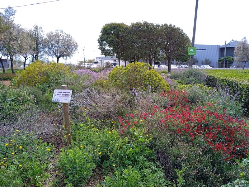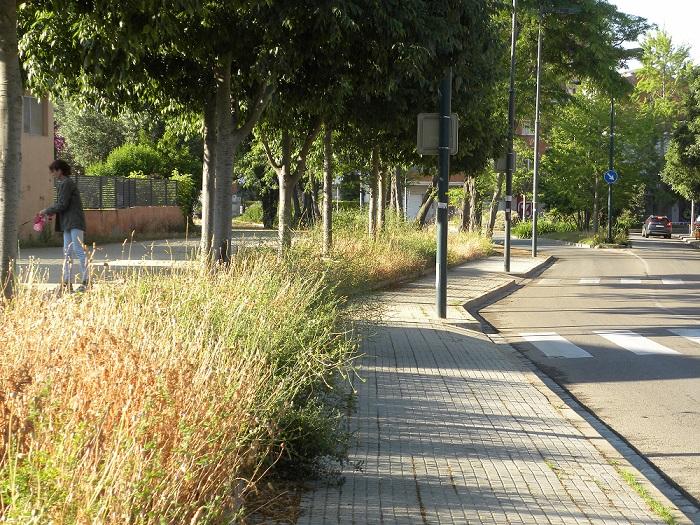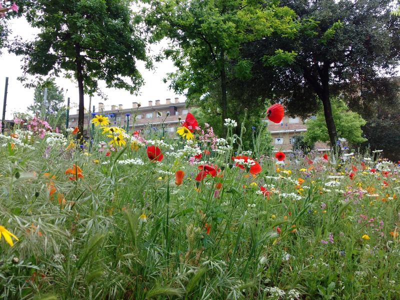 Peus d'arbres i franja sembrades amb plantes silvestres i vivaces