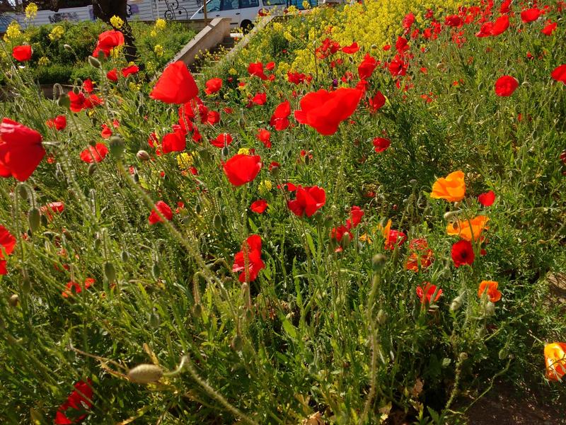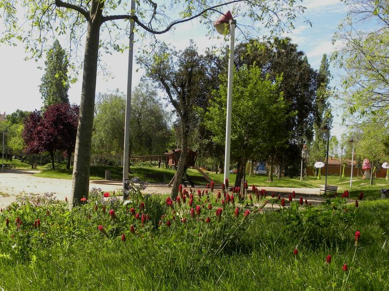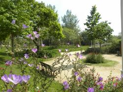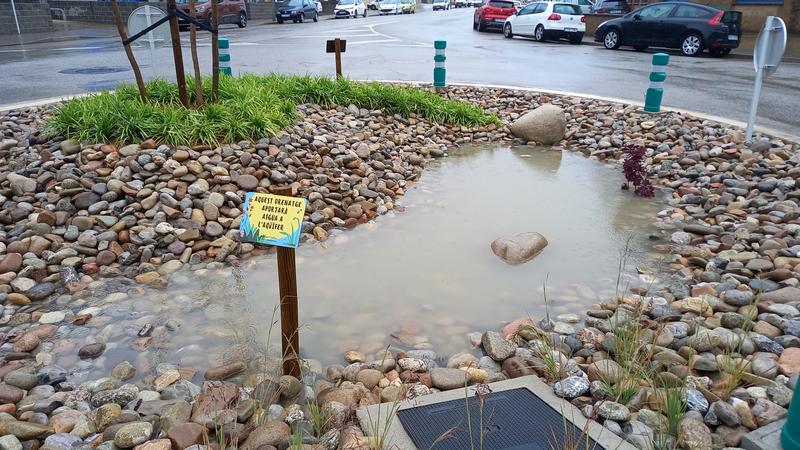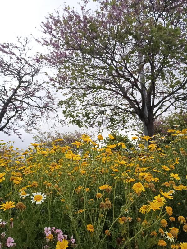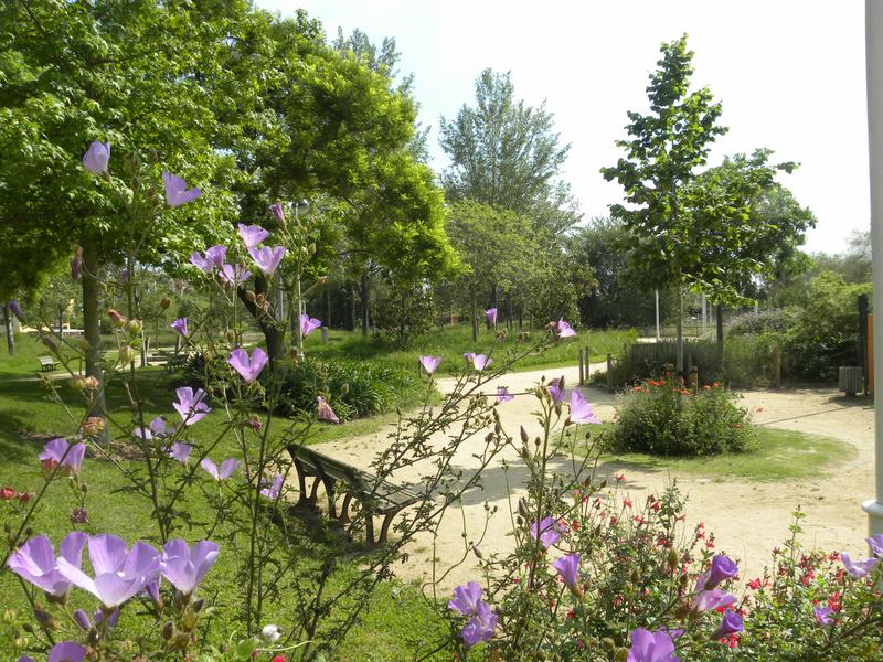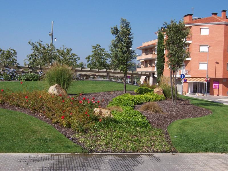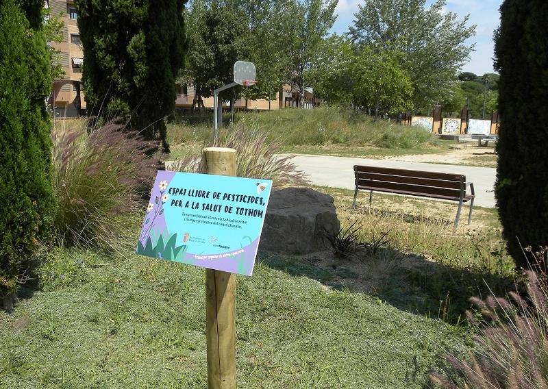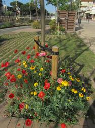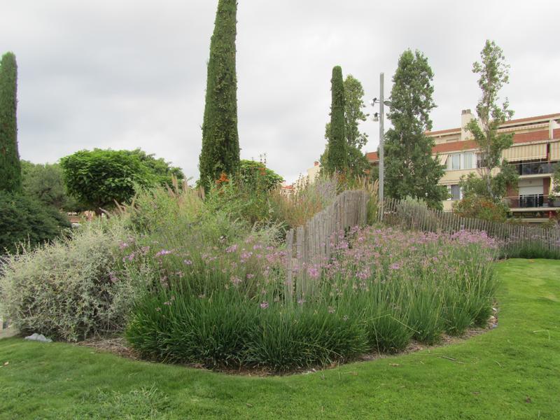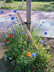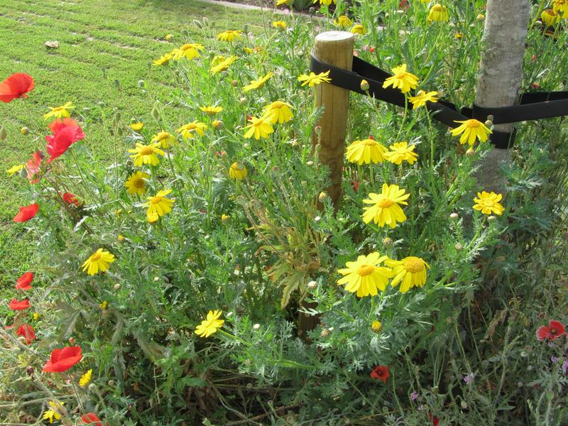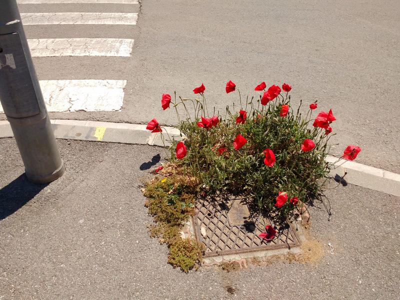 Peus d'arbres i franja sembrades amb plantes silvestres i vivaces