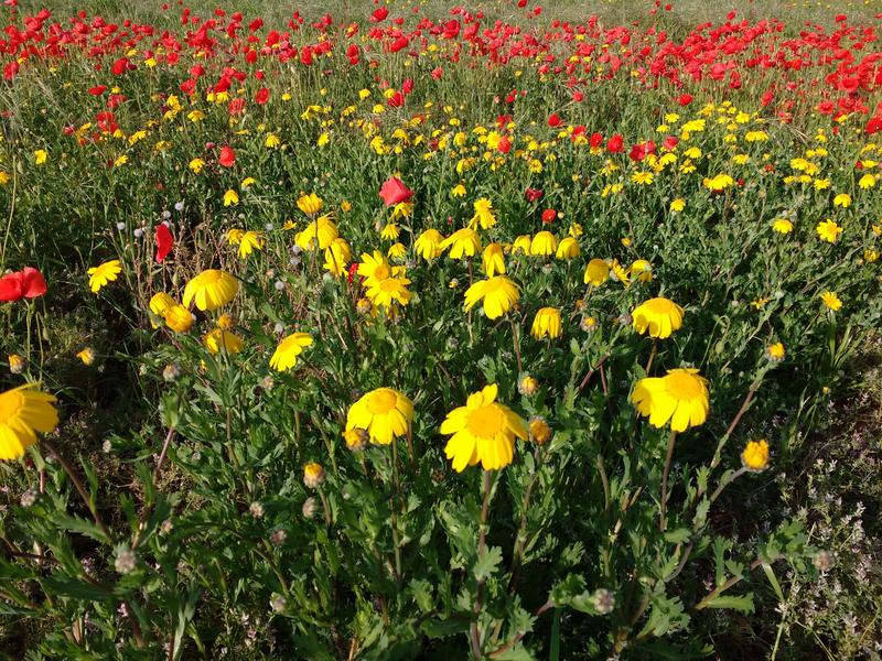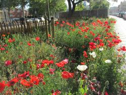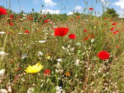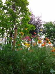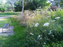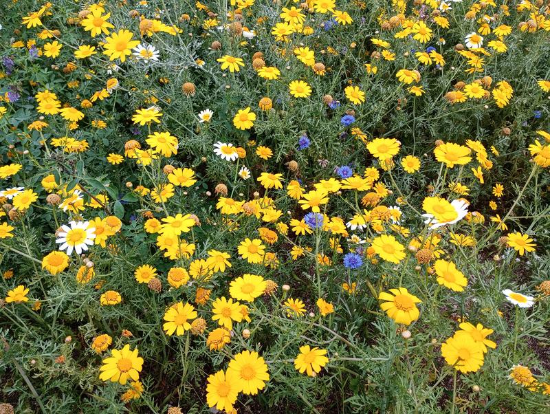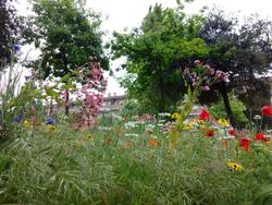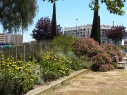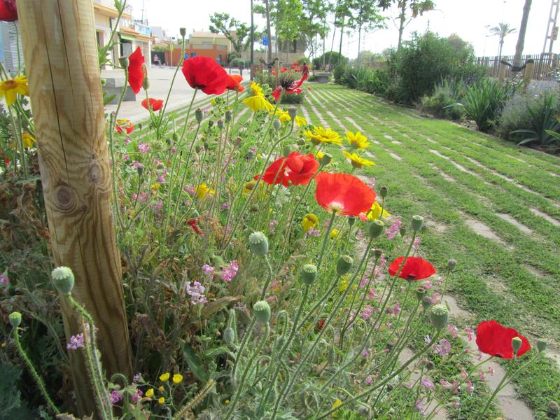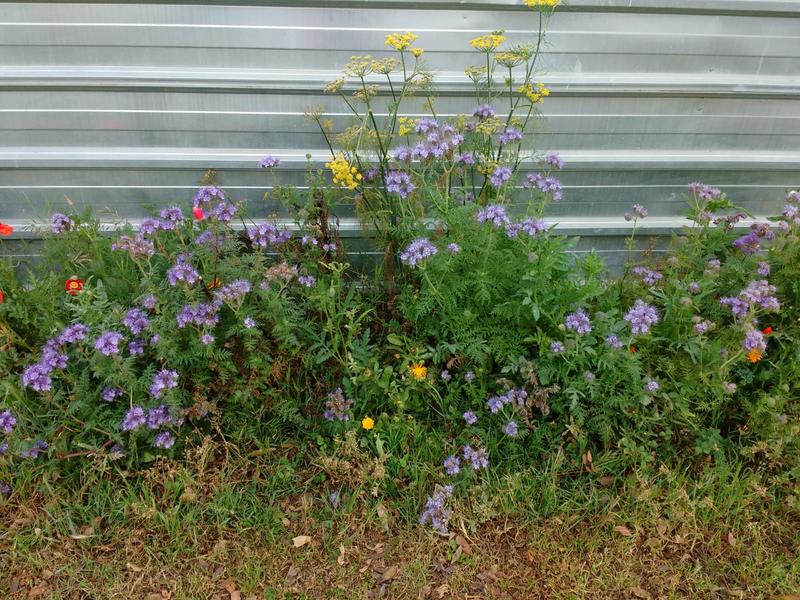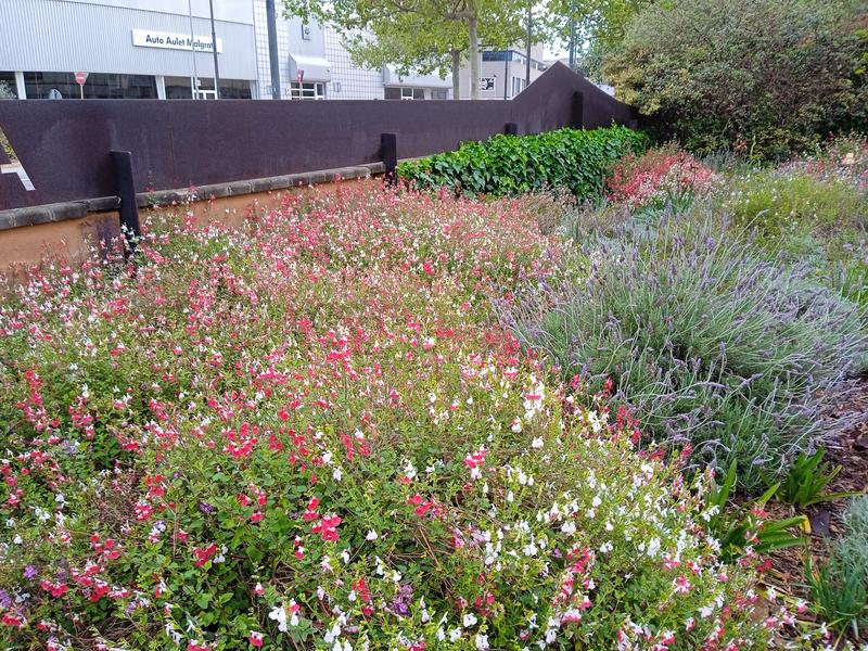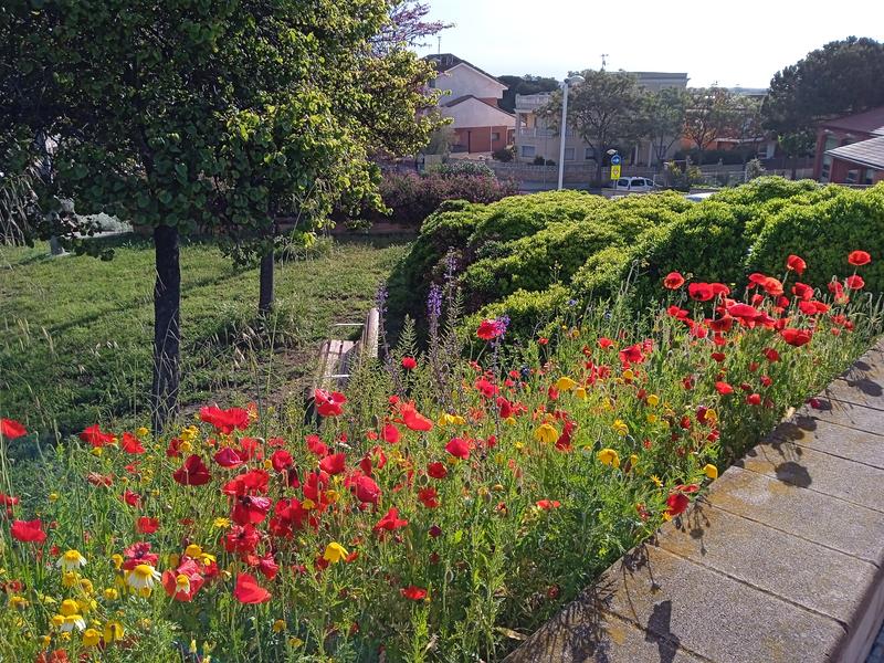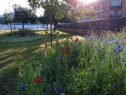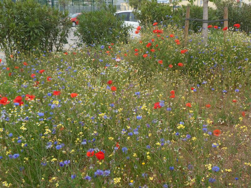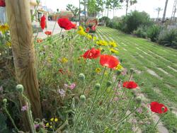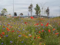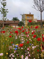 Escocell sembrat amb plantes silvestres i vores d'arbustives