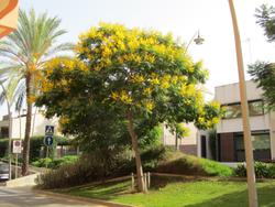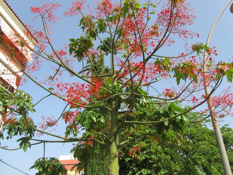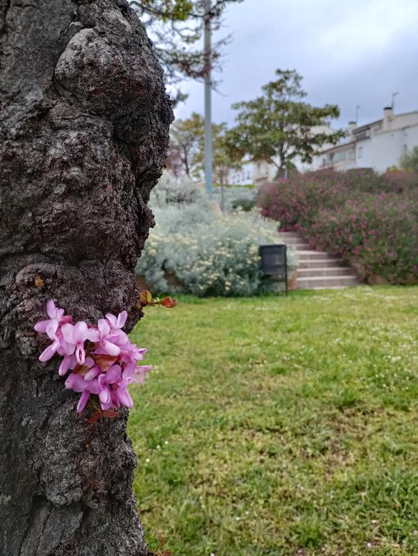 Escocell corregut i peu d'arbre sembrat amb plantes silvestres